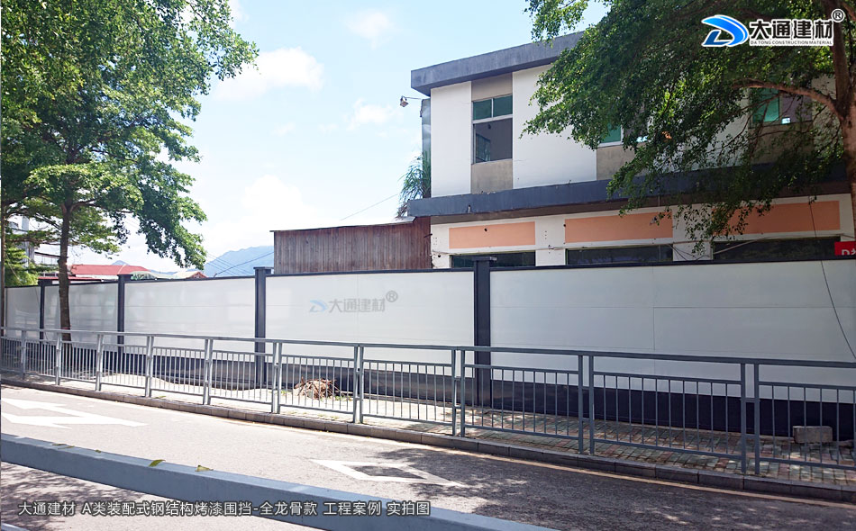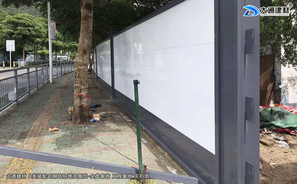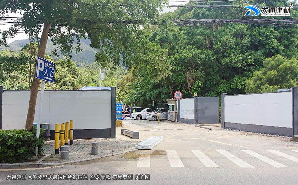 深圳市大通建材裝配式鋼圍擋全龍骨A款 采用裝配式+鋼結(jié)構(gòu)+全龍骨 烤漆鋼板構(gòu)造 安全穩(wěn)固 抗風(fēng)力強 美觀環(huán)保 經(jīng)久耐用,應(yīng)用于廣東省深圳市大鵬新區(qū)楊梅坑改造項目工程中,以下展示的圍擋圖片是大通建材裝配式鋼圍擋全龍骨A款在該項目部分位置的實拍圖