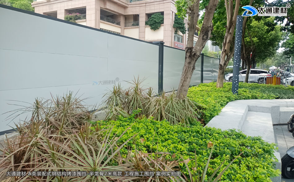 深圳城市建設(shè)城區(qū)改造工程項(xiàng)目選用大通建材2米高裝配式圍擋烤漆A款,具有結(jié)構(gòu)牢固、可抗臺(tái)風(fēng)、可回收循環(huán)利用、美觀、環(huán)保等特點(diǎn),是目前業(yè)內(nèi)倍受喜愛的圍擋之一。