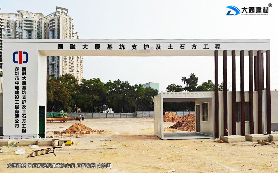 深圳市中城建設工程有限公司承建的深圳國融大廈基坑支護及土石方工程選用了深圳市大通建材標準工地大門及鋼結構圍擋