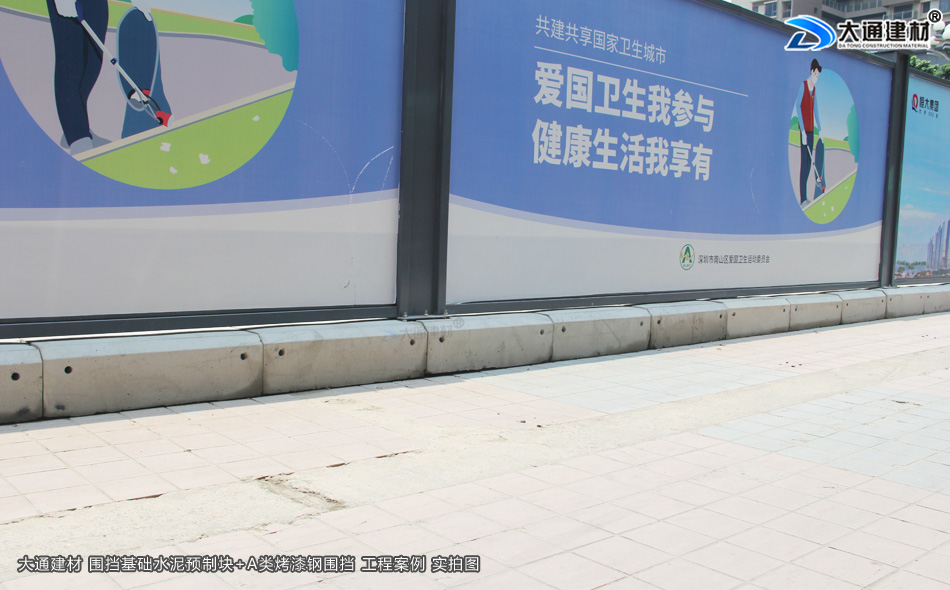 深圳大通建材在東莞設(shè)有大型的圍擋基礎(chǔ)水泥預(yù)制塊生產(chǎn)基地,有大批量現(xiàn)貨 下單即可發(fā)貨配送安裝,大通建材圍擋基礎(chǔ)通常與裝配式鋼圍擋A類/B類/C類一起使用,基礎(chǔ)塊體將圍擋立柱固定在圍擋基礎(chǔ)上,更安全穩(wěn)固。大通建材圍擋基礎(chǔ)水泥預(yù)制塊的常規(guī)尺寸(長(zhǎng)寬高):1000mmx600mmx300mm