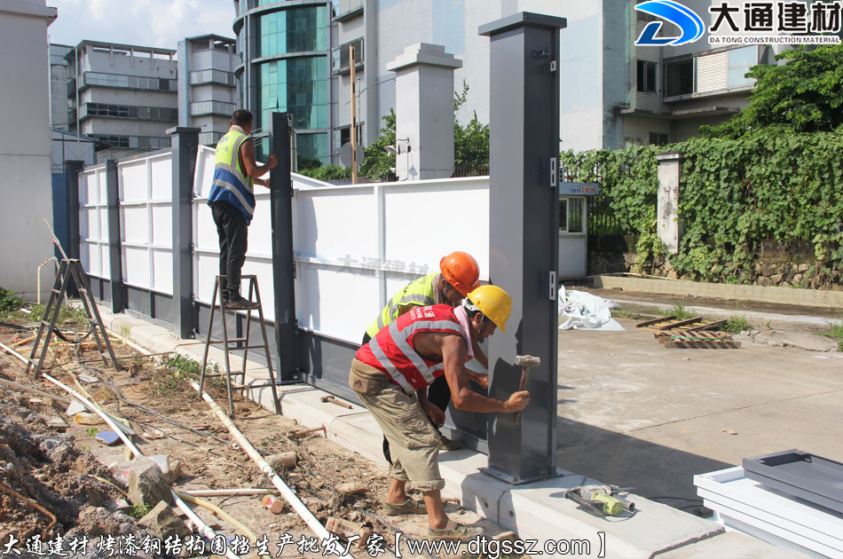廣州天河區東圃大馬路使用大通建材工地施工圍擋a型標準款的安裝案例展示