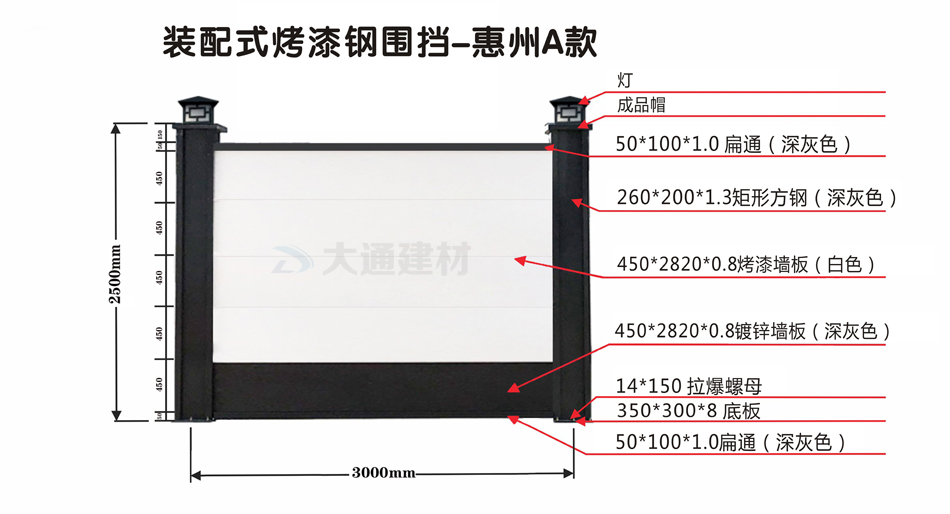 深圳市大通建材有限公司生產(chǎn)的惠州A款烤漆鋼圍擋,符合惠州市政標(biāo)準(zhǔn)、安全穩(wěn)固、美觀環(huán)保,適用于惠州各地的市政建設(shè)施工、房地產(chǎn)項目施工、隧道施工、地鐵項目施工、路橋維護(hù)施工、立面改造施工、廠房隔斷施工、管網(wǎng)改造等工程。