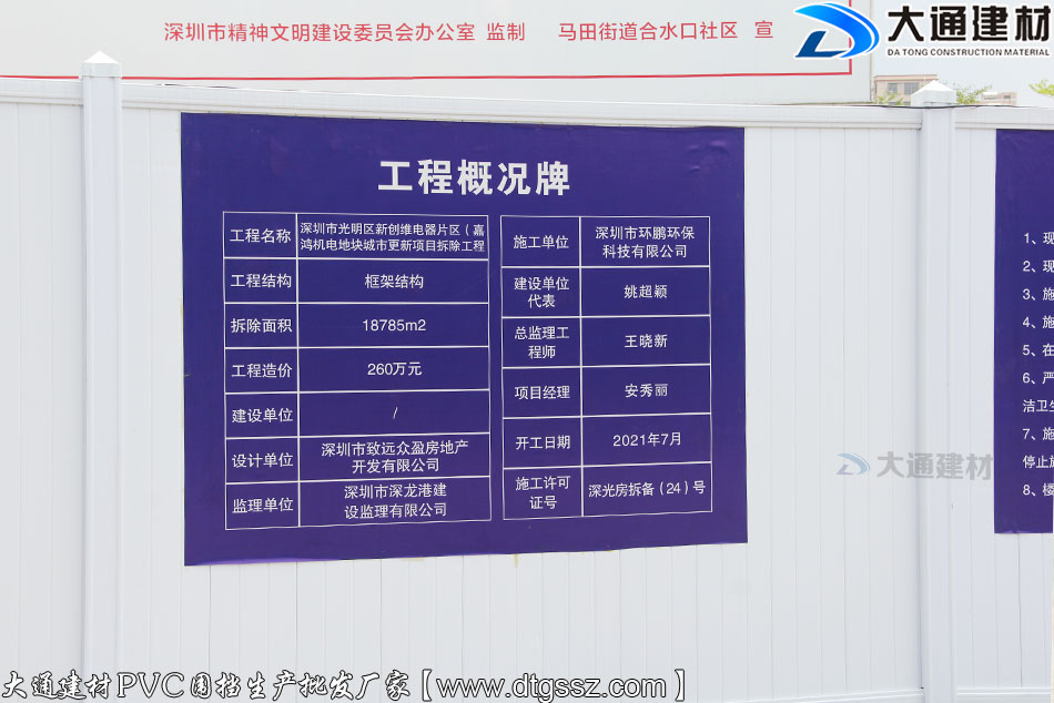 圍擋供應(yīng)商:深圳市大通建材工程PVC圍擋生產(chǎn)廠家