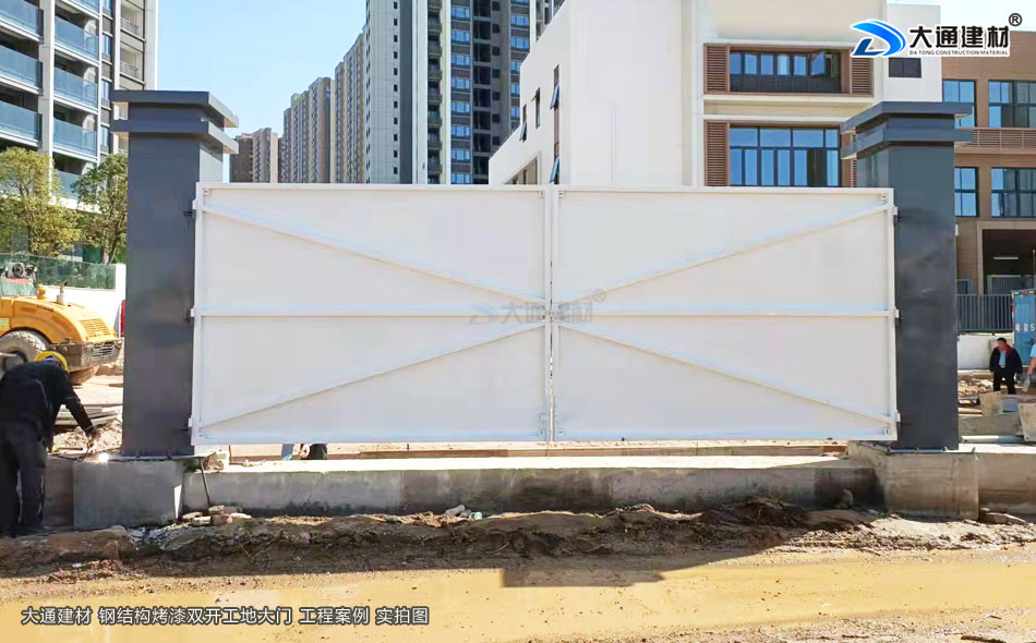 大通圍擋為您解答關于“項目施工現場新款烤漆工地大門安裝現場解析”相關問題?