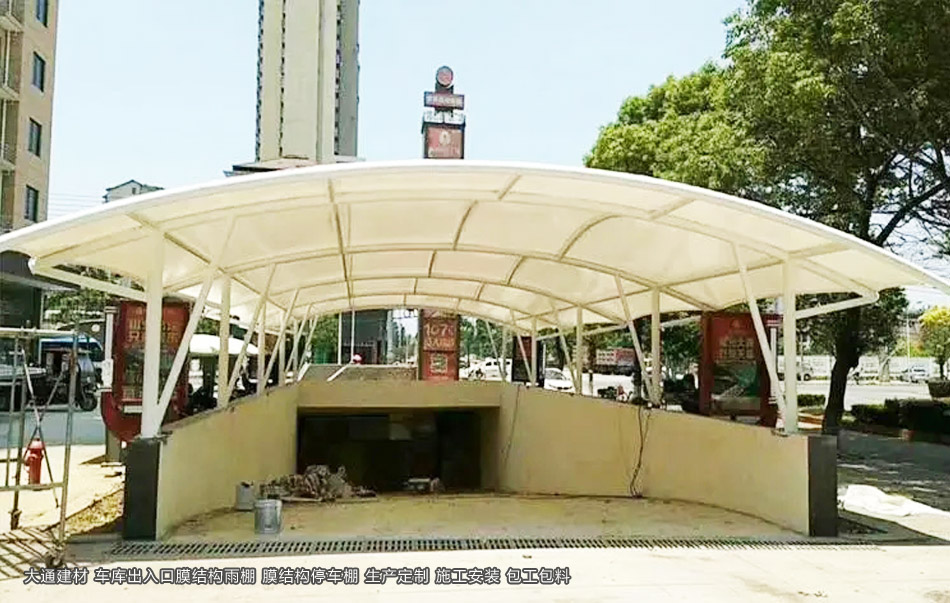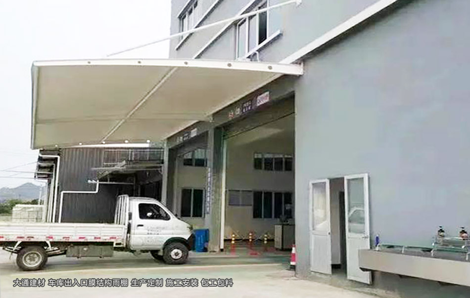深圳市大通建材車庫出入口膜結(jié)構(gòu)雨棚可根據(jù)實(shí)際需求進(jìn)行定制和設(shè)計(jì)調(diào)整,滿足不同場所和用途的需求。大通擁有專業(yè)的生產(chǎn)定制、施工安裝 車庫出入口膜結(jié)構(gòu)雨棚的團(tuán)隊(duì),廠家直銷各類膜結(jié)構(gòu)雨棚價格便宜。更多具體詳情可致電 13826562448 梁先生 期待您的來電咨詢選購