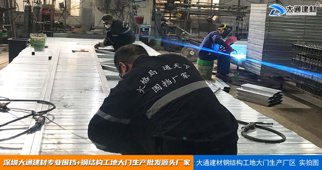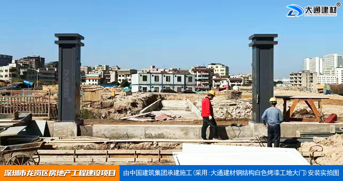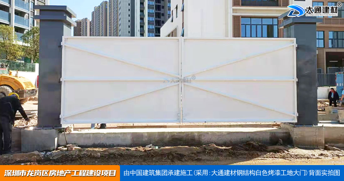 深圳大通建材生產銷售的工地烤漆雙開門-鋼結構工地大門適用于各種市政工程項目、房地產項目、地鐵修建項目施工、管網改造、小區改造、城市建設、道路修建等工程項目使用