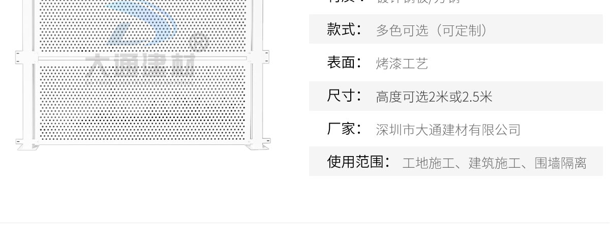 深圳市大通建材有限公司是一家集研發、生產、安裝、服務于一體的綜合性圍擋廠家,公司主營產品鋼圍擋、鋼結構圍擋、PVC圍擋、施工圍擋、市政圍擋、工地圍擋、烤漆鋼圍擋,官網:http://www.miserable.cn/ ,銷售熱線:138 2656 2448