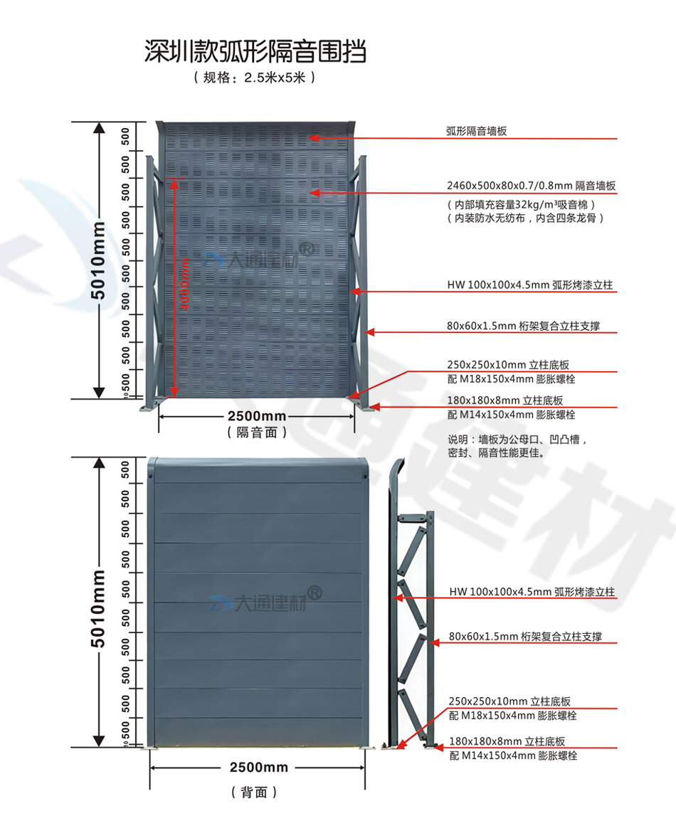 深圳市大通建材有限公司為各項(xiàng)目工程單位提供 各類隔音屏圍擋、鐵路隔音圍擋、公路隔音圍擋、高速隔音圍擋、高架橋隔音圍擋的生產(chǎn)定制、批發(fā)零售、配送安裝等包工包料的服務(wù),具體詳情 請致電13826562448或微信dt13826562448梁先生